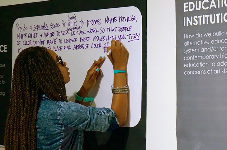 In the summer of 2015, Chats About Change curated the Los Angeles Contemporary Exhibitions' (LACE) Project Room with a residency by Michelada Think Tank (MTT), an artist collective organized by Noé Gaytán, Mario Mesquita, Shefali Mistry, and Carol Zou. MTT inhabited the LACE Project Room with a humorous and critical exploration of survival under a framework of institutional racism in the arts. Through a series of weekly think tank sessions, MTT brought people together to talk about survival strategies for artists of color working in a predominantly white art world. The knowledge generated in these discussions were compiled and published as a “PoC Survival Guide” in LACE’s Project Room. This guide was a tongue-in-cheek look at how artists are impacted by race. If artists of color can come together as a community to make survival easier, we can then begin to foster more radical artistic practices. MTT held think tanks at sites where communities of color were working; some of the sessions were open forums at LACE, while other sessions took place elsewhere.