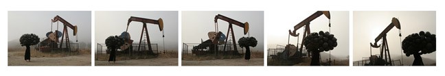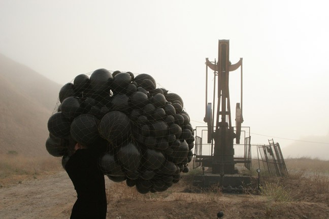 IBD (Improvised Balloon Device) was created at the height of the Iraq war "surge" in 2007. In the video, photographs and installation the artist becomes a living oil well, bubbling in mourning and anger.