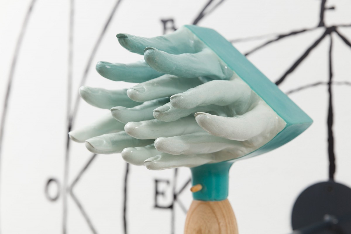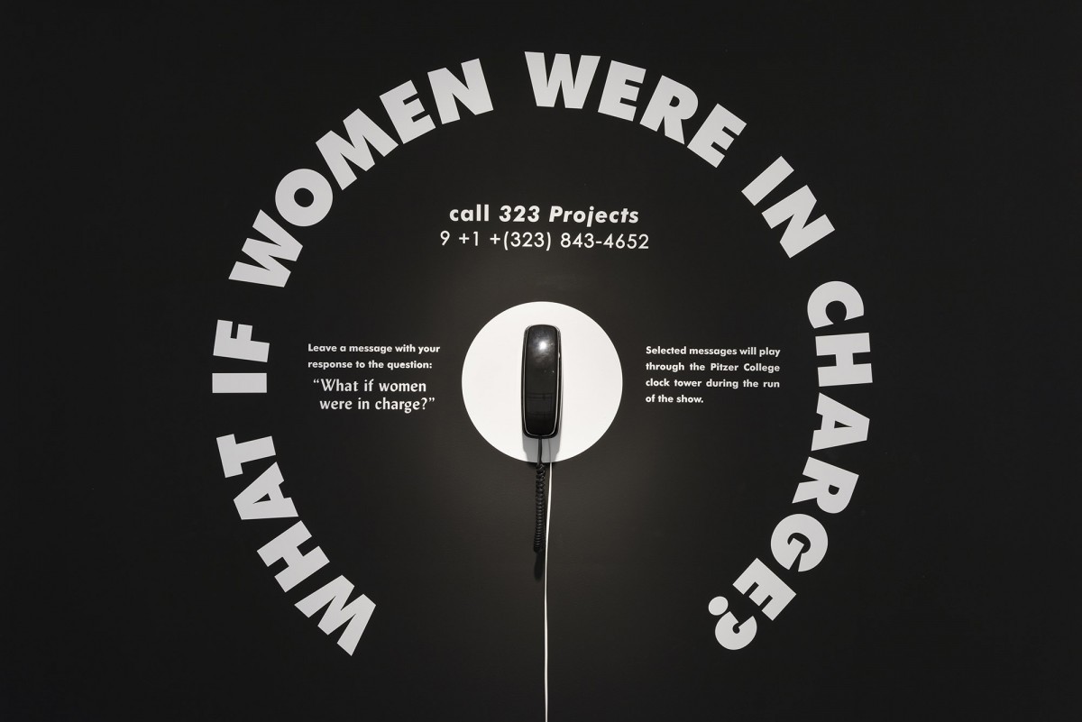 Mann’s instruments suffuse the human figure with acoustic properties. Her blame-game rattles and me-and-you-kazoos function both as highly crafted objects and utilitarian devices, accessible for audiences to play and handle in art as well as activist settings. In addition to the sculptural components Mann has invited composers, artists, and poets to produce scores for the exhibition, which will be performed throughout the show. The Japanese-Korean feminist art collective Tomorrow Girls Troop (TGT) also collaborated with Mann on posters that call attention to the erosion of women’s and LGBTQI rights in the current political administrations in the USA and Japan. Audiences can respond to these collaborative posters by calling 323 Projects, a telephone line as an exhibition site initiated by Tucker Neel, and leave messages answering the question: “What if women were in charge?” The audiences’ responses will be broadcast periodically from Pitzer’s clock tower throughout the duration of the exhibition.