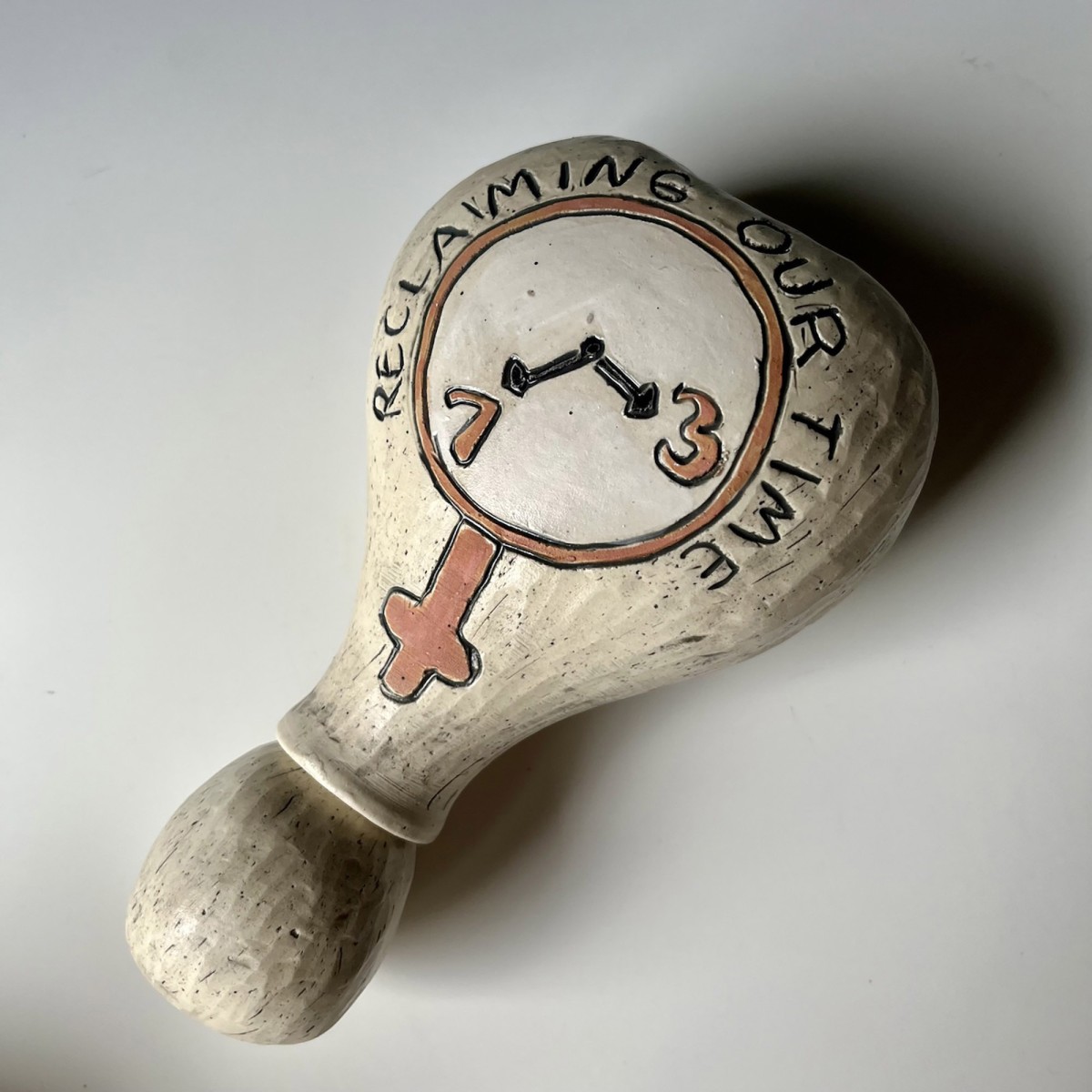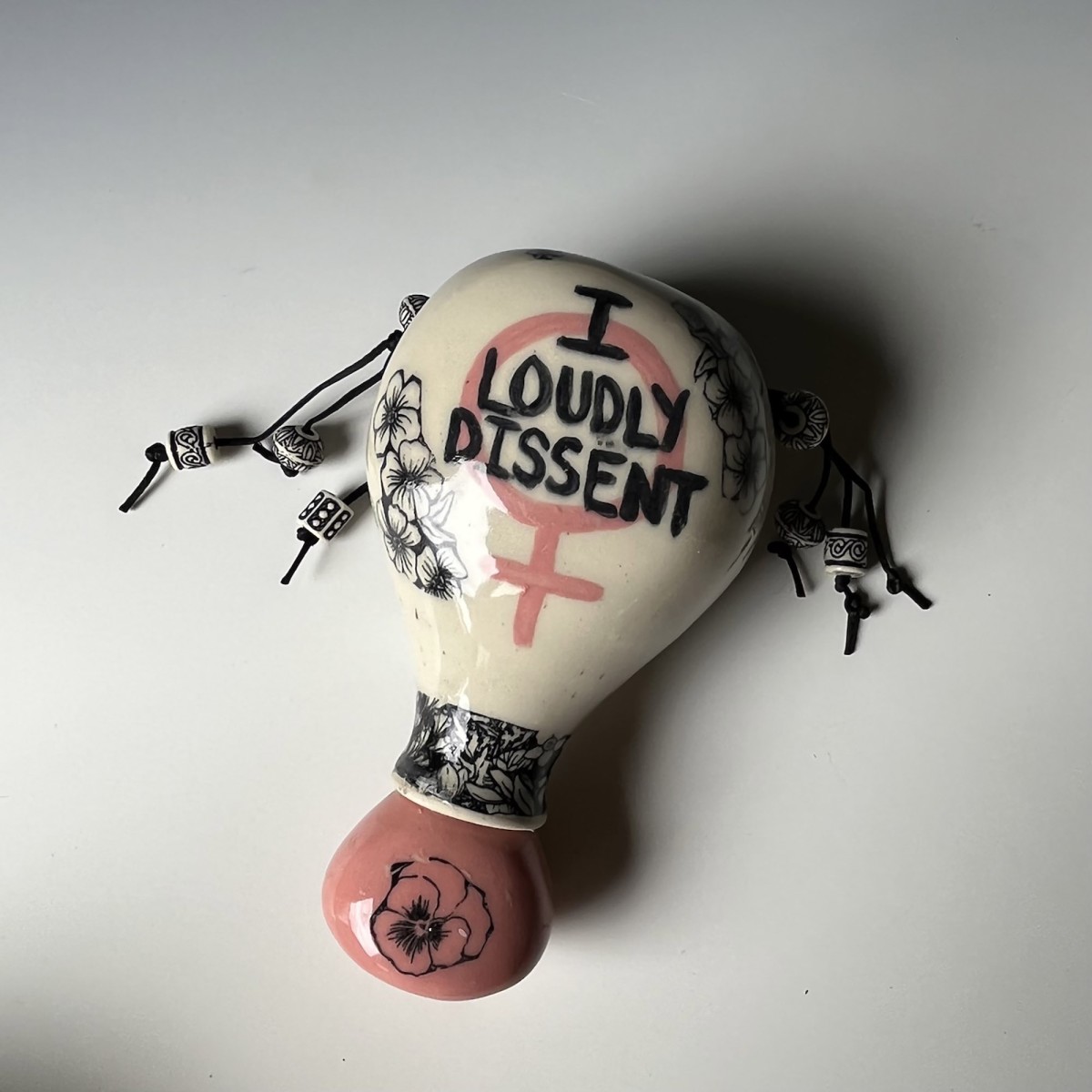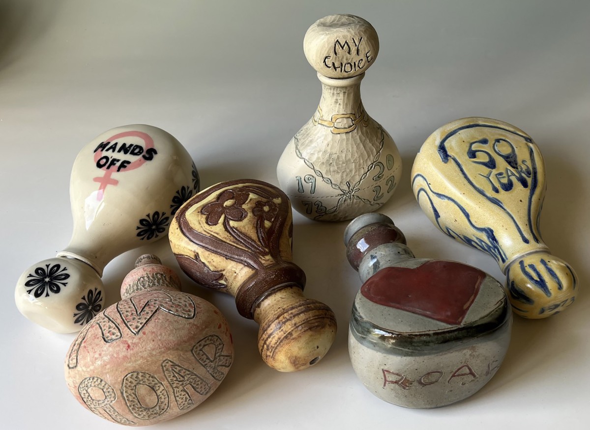 Shake, Rattle, Roll chapters: Ceramic protest rattles produced by communities around the globe. These rattles were created by a group of Feminist potters based in rural Pennsylvania, U.S.A. Photo courtesy of Nell Hazinski.