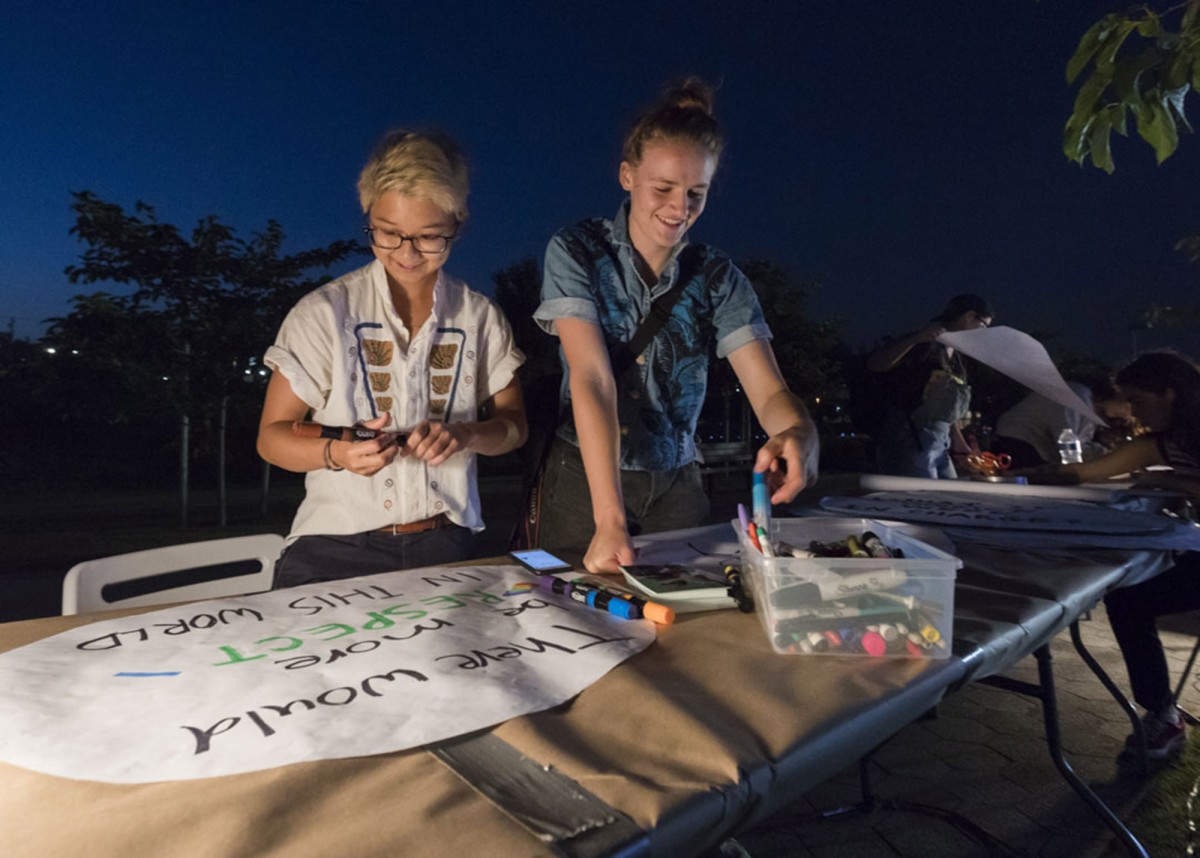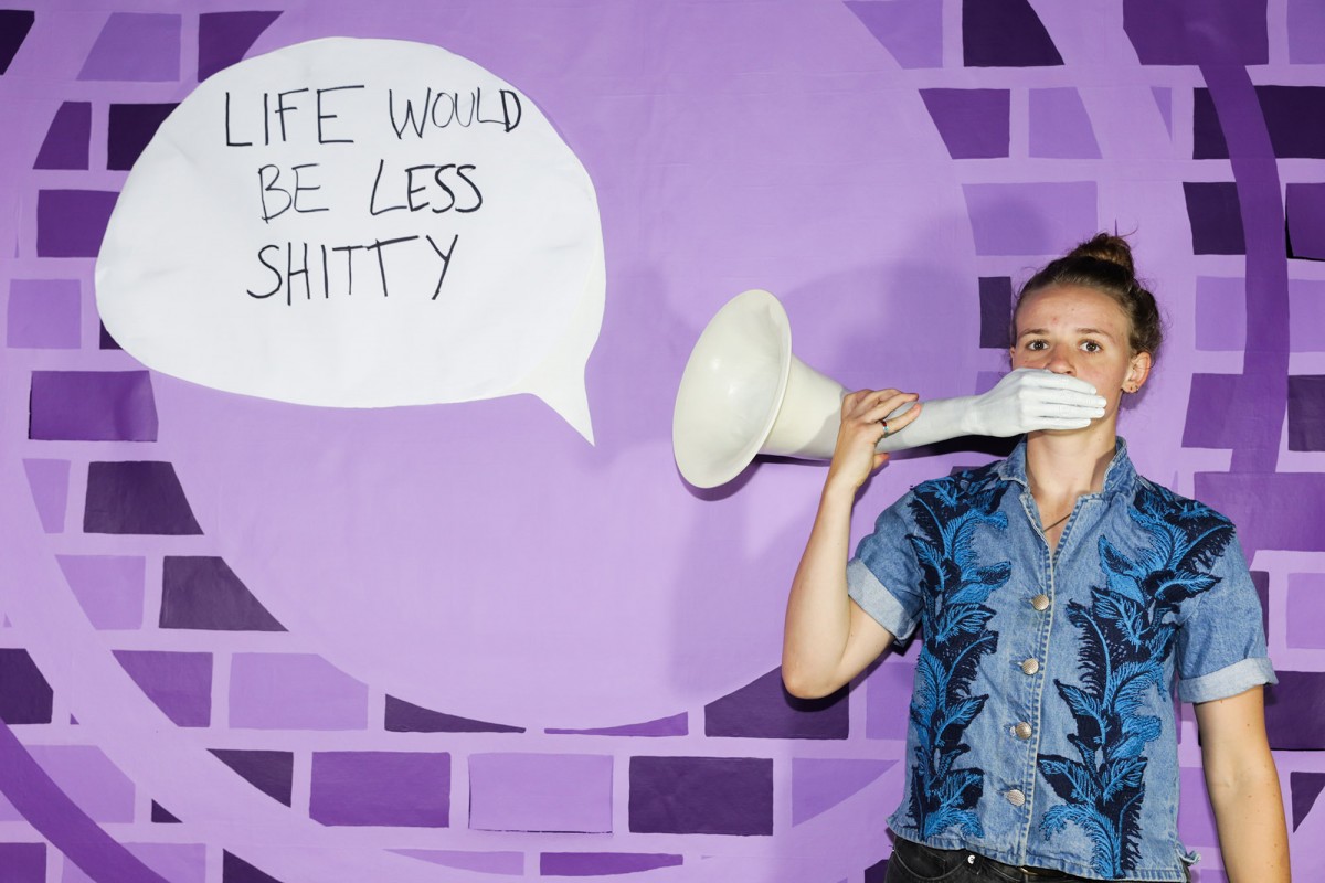 Voicing and Revoicing, a collaborartion with student photographers from the comnunity organization Las Fotos Project, asked participants to answer the question "What if women were in charge?". Participants were then invited to pose with their written responses in front of a hand painted photo backdrop. Voicing and Revoicing was part of the Aint' I a Womxn Festival, produced by Freewaves, which took place in July, 2018 in the Los Angeles State Historic Park, in downtown Los Angeles, CA.