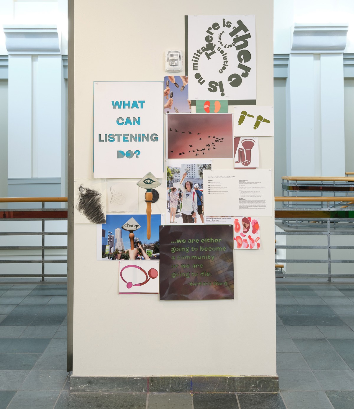 What Can Listening Do (Part 1)? was a curated group show that presented a growing movement of Los Angeles based artists who use aurality (and its limits) to alter consciousness and spur action. The artists included were: Alison O'Daniel, Lucky Dragons, Susan Silton and Clarissa Tossin.